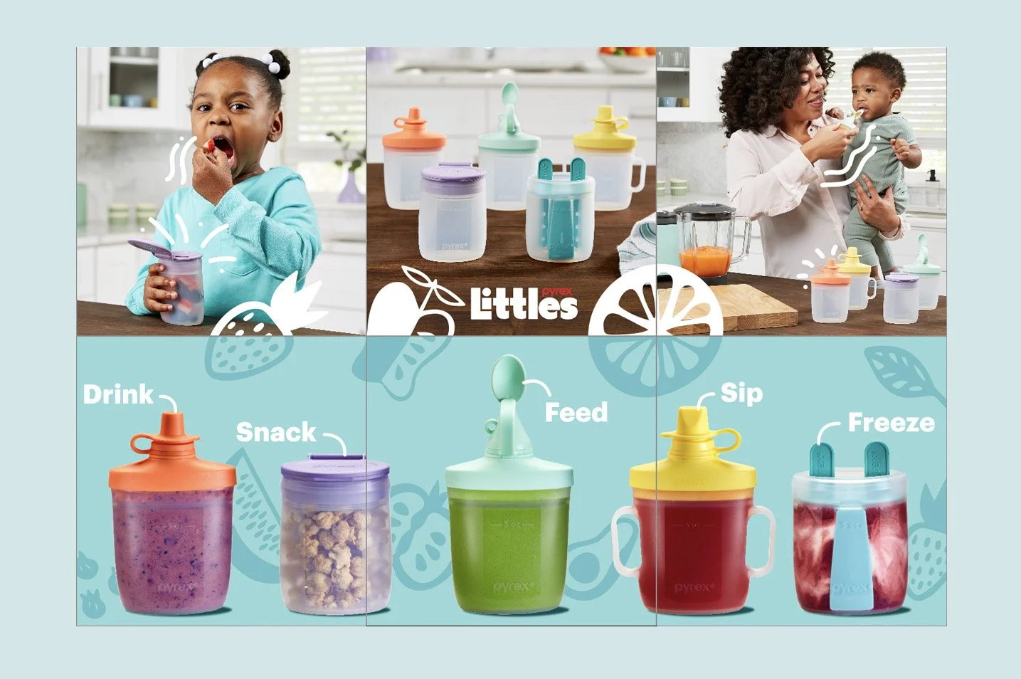 Pyrex Littles. Product launch digital assets Licensed Pyrex. Art direction for lifestyle photoshoot for new licensed Pyrex storage sets.